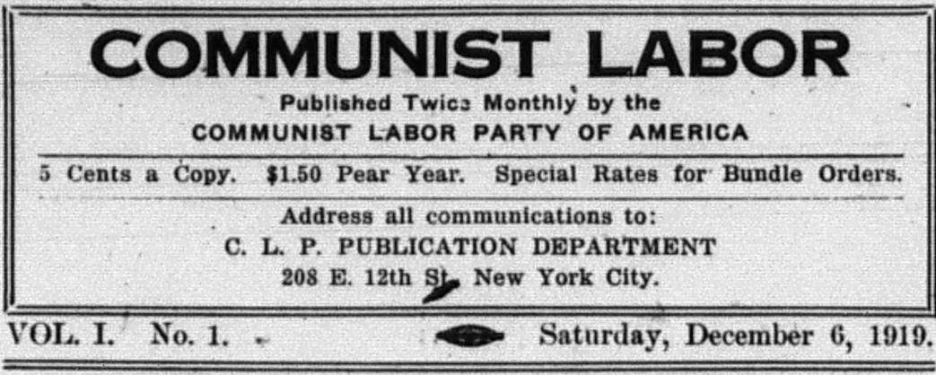 The issuing of an official paper, a fighting organ for the party, was next debated. The need for such a periodical was apparent to all committeemen, in fact, the demand by the membership for an official national paper was imperative. After going into detail as to the successful financing of such a paper, a motion was passed to publish a bi-weekly under the direct control of the National Executive Committee of the party. At a subsequent session Max Bedacht was elected editor and the new periodical was named Communist Labor.