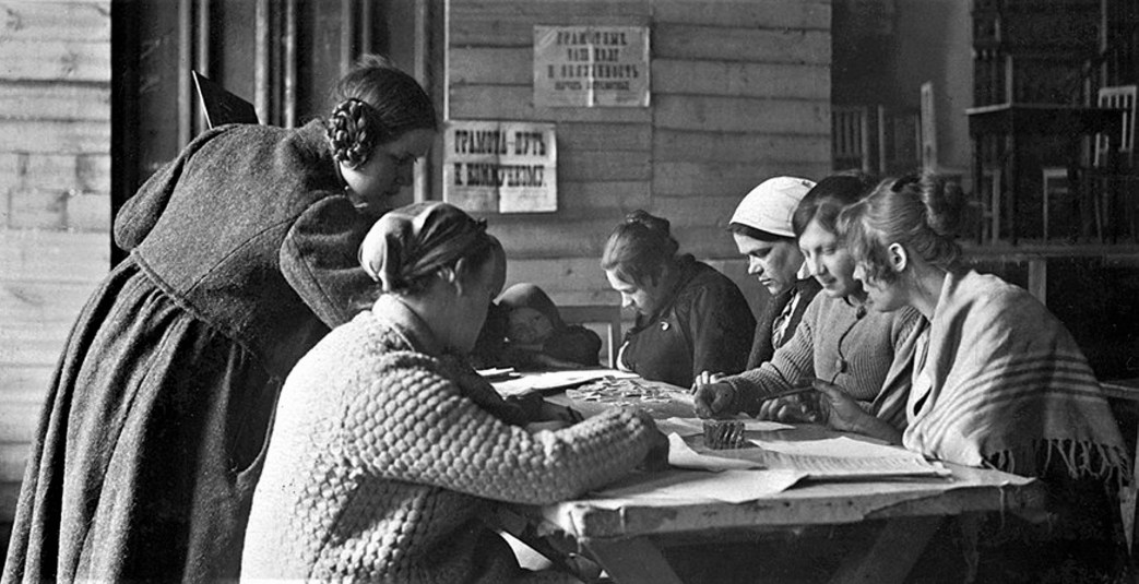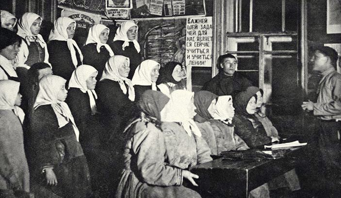 The first question that confronted us was: whom shall we give to the illiterates as teachers and organizers? The teachers who came from the ranks of the intellectuals can only teach reading and writing. They will very rarely go beyond this. We were quite clear that it would be necessary for us to make use in this work of the champions of Communism, the workers themselves. The war and the repeated mobilizations deprived us of the male workers, however, and therefore only one source remained from which we could draw our recruits —namely the working women. We began to draw them into this work. The sections of workingwomen at first responded rather weakly to the steps undertaken by us. They approved the plan with great misgivings. They were ready to make use of working-women as representatives in the commission in which they, almost always together with the men representatives, were to embody the “voice of the people.” But that was not what was wanted. We had to have the working-women themselves go about this work, themselves become organizers, propagandists, teachers.