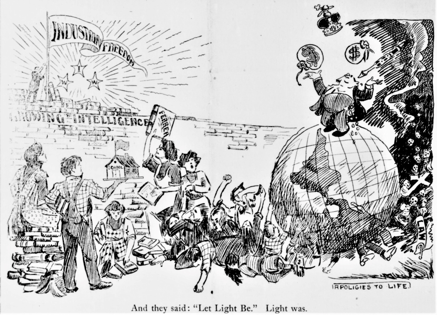 The Industrial Union Bulletin, and the Industrial Worker were newspapers published by the Industrial Workers of the World (IWW) from 1907 until 1913. First printed in Joliet, Illinois, IUB incorporated The Voice of Labor, the newspaper of the American Labor Union which had joined the IWW, and another IWW affiliate, International Metal Worker.The Trautmann-DeLeon faction issued its weekly from March 1907. Soon after, De Leon would be expelled and Trautmann would continue IUB until March 1909. It was edited by A. S. Edwards. 1909, production moved to Spokane, Washington and became The Industrial Worker, “the voice of revolutionary industrial unionism.”