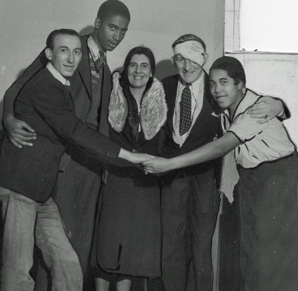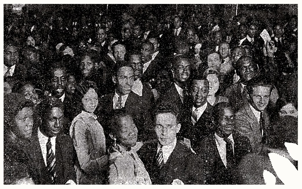 Expect Record Crowd of White, Negro Workers at Unity Dance Tonite. All signs indicate a record gathering of Negro, white, Latin American, Japanese and Chinese workers tonight at the inter-racial dance given by Section Four at Imperial Auditorium, 1604 West 129th St. Various ticket stations report a big demand for tickets as a result of widespread distribution of advertising leaflets at the doors of Harlem factories. These inter-racial dances are proving one of the most effective means of bringing together workers of various races and serve to break down the prejudice with which the white ruling class seeks to divide and weaken the working class. Tickets may be secured at the Workers Book Store, the Champion office and the Spanish Workers Club. The committee in charge has spared no pains to make tonight’s affair one of the most enjoyable of this season’s working class affairs. Music will be furnished by the famous John C. Smith’s Negro Orchestra, and there will also be a presentation of “Marching Guns,” a Workers’ Laboratory Theatre production.