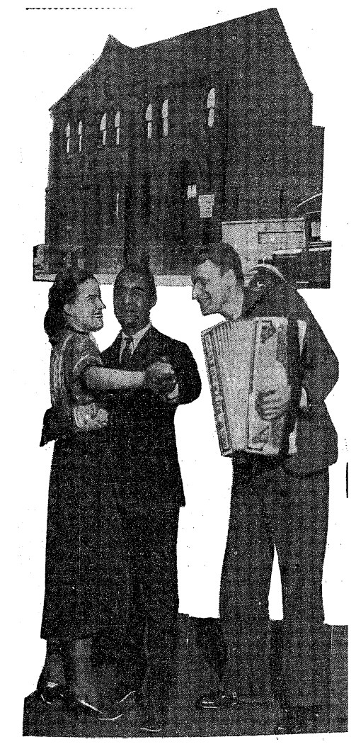 Above: the Tom Mooney Hall, Left: Joseph Barter and Ellen Rodgers dance, Right: Walter Potryuski plays jazz on the accordion.