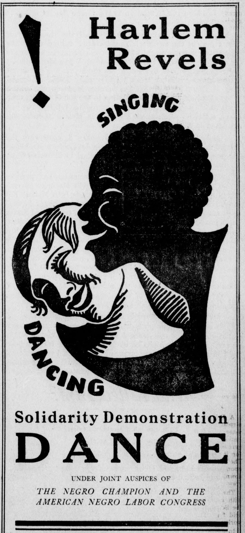It may not seem exceptional today, but it was more than that in 1927. In many places of the 1920s U.S.A. dancing with a white woman was a death sentence for a Black man. A way to prove you were serious about Black freedom was to break that most serious of taboos. Beginning in the late 1920s, the Communist Party and affiliated organizations did the exceptionally dangerous and began to sponsor ‘inter-racial dances,’ including in Jim Crow cities like Baltimore. Coinciding with an increased and sharper focus on Black liberation, the aim was not only to challenge racism in society and the workers’ movement, but white chauvinism within the Party itself . Here is a dossier of dozens of articles and notices from the Daily Worker between 1927 and 1933 on the dances of that period, sometimes several happening in a city in a single night. Some were attacked by police and thugs, others were legally refused. Many hundreds more were held that do not appear below. A book should be written…