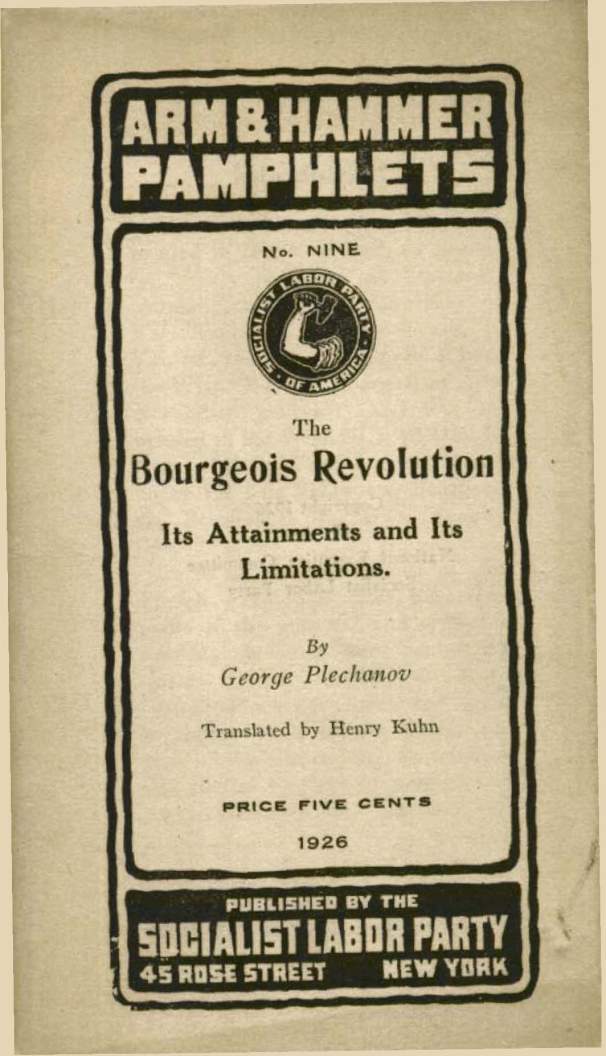 The Bourgeois Revolution: Its Attainments and Its Limitations by George Plekhanov. Published by the Socialist Labor Party, New York. 1926.
