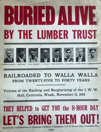 J.T. ‘Red’ Doran, an I.W.W. organizer among lumber workers in the Pacific Northwest, writes on the ‘Centralia Massacre’ of 1919 in which wobblies defended their hall against an attack by the American Legion resulting in the death of five vigilantes and the lynching of fellow worker Wesley Everest.
