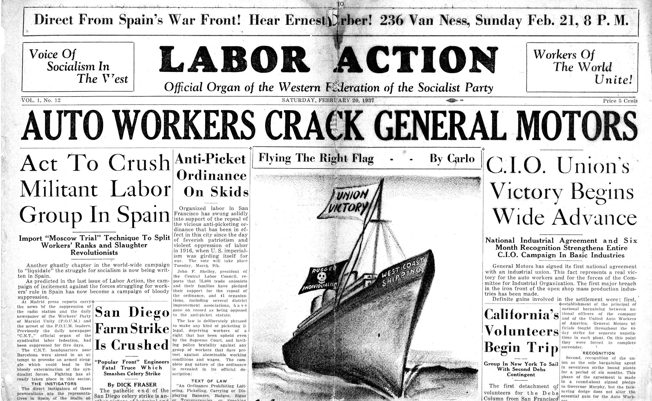 Labor Action (San Francisco). Vol. 1 No. 12. February 20, 1937.