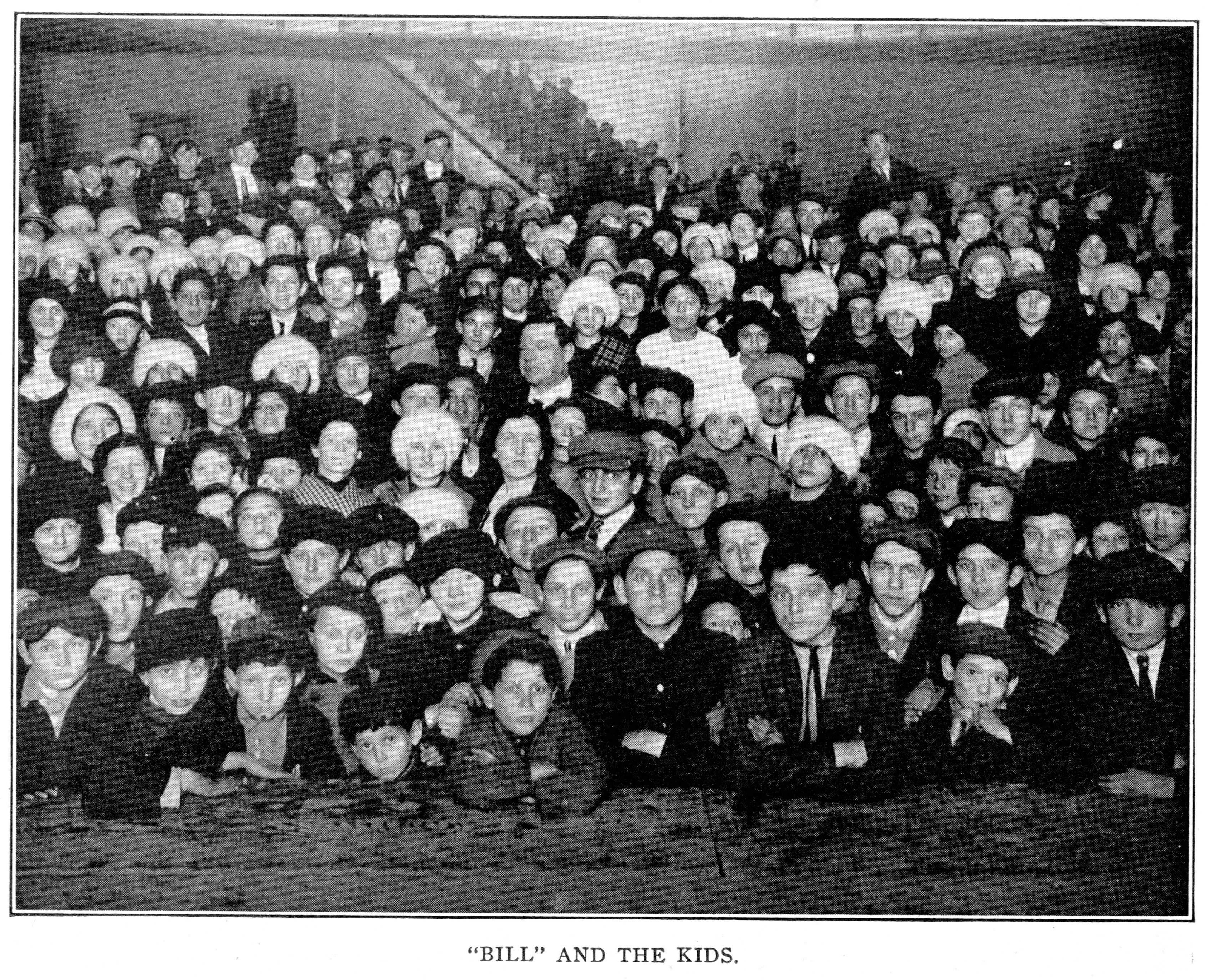 It was visitors’ day I went to the door to speak with a friend. Outside the reception room was full of women and children, carrying packages, and pasteboard boxes, and pails full of dainties and little comforts lovingly prepared, which meant hungry and ragged wives and babies, so that the men might be comfortable in jail. The place was full of the sound of moaning; tears ran down their work-roughened faces; the children looked up at their fathers’ unshaven faces through the bars and tried to reach them with their hands.