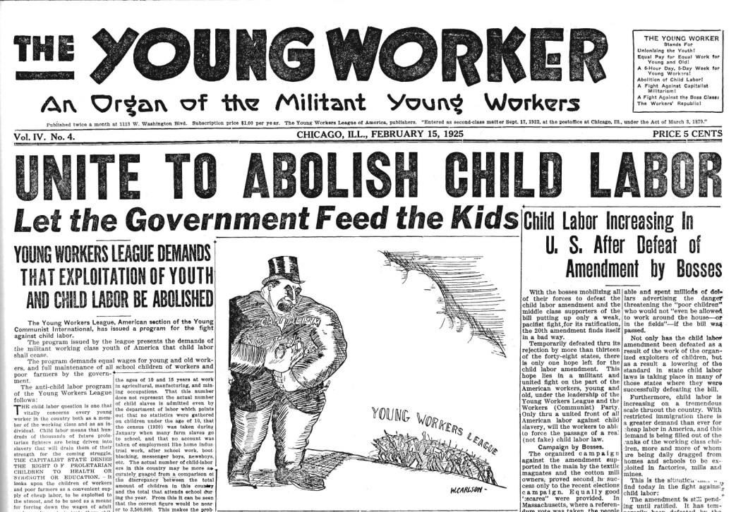 The Young Worker was produced by the Young Workers League of America beginning in 1922. The name of the Workers Party youth league followed the name of the adult party, changing to the Young Workers (Communist) League when the Workers Party became the Workers (Communist) Party in 1926. The journal was published monthly in Chicago and continued until 1927 when it moved to New York City and remained in print until 1937. Editors included Oliver Carlson, Martin Abern, Max Schachtman, Nat Kaplan, and Harry Gannes.