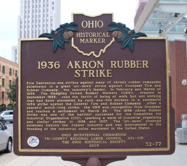 Who will ever forget the brilliant wave of sit-downs that swept the country in 1936? Akron rubber workers developed that weapon. They staged over 100 successful sit-downs that year, before the French working class terrified the bourgeoisie of the world by the May sit-down strikes.