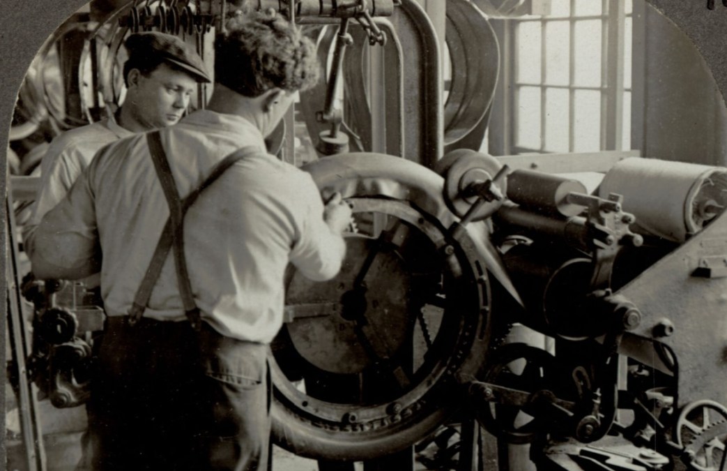 The 75,000 rubber workers of Akron of 1920 were permanently reduced to less than 45,000 by 1930 due to technological developments in the industry. Productivity per rubber worker more than doubled, wages remained stationary. The cost of 17 tire price wars in the virtually bankrupt industry was foisted on the rubber workers in the form of wage cuts.