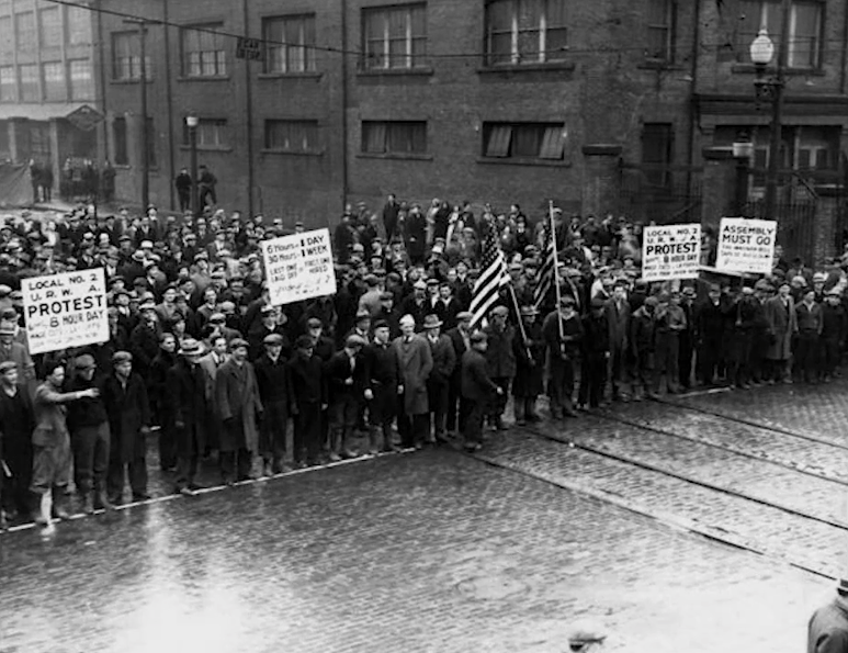 The gigantic sit-down wave that shook the foundations of capitalist France added fuel to the fires of the American struggles. From rubber plants they spread to other industries, especially automotive (not the least reason was that Akron militants went into the industry and agitated for sit-downs as the best method of building the United Automobile Workers of America).