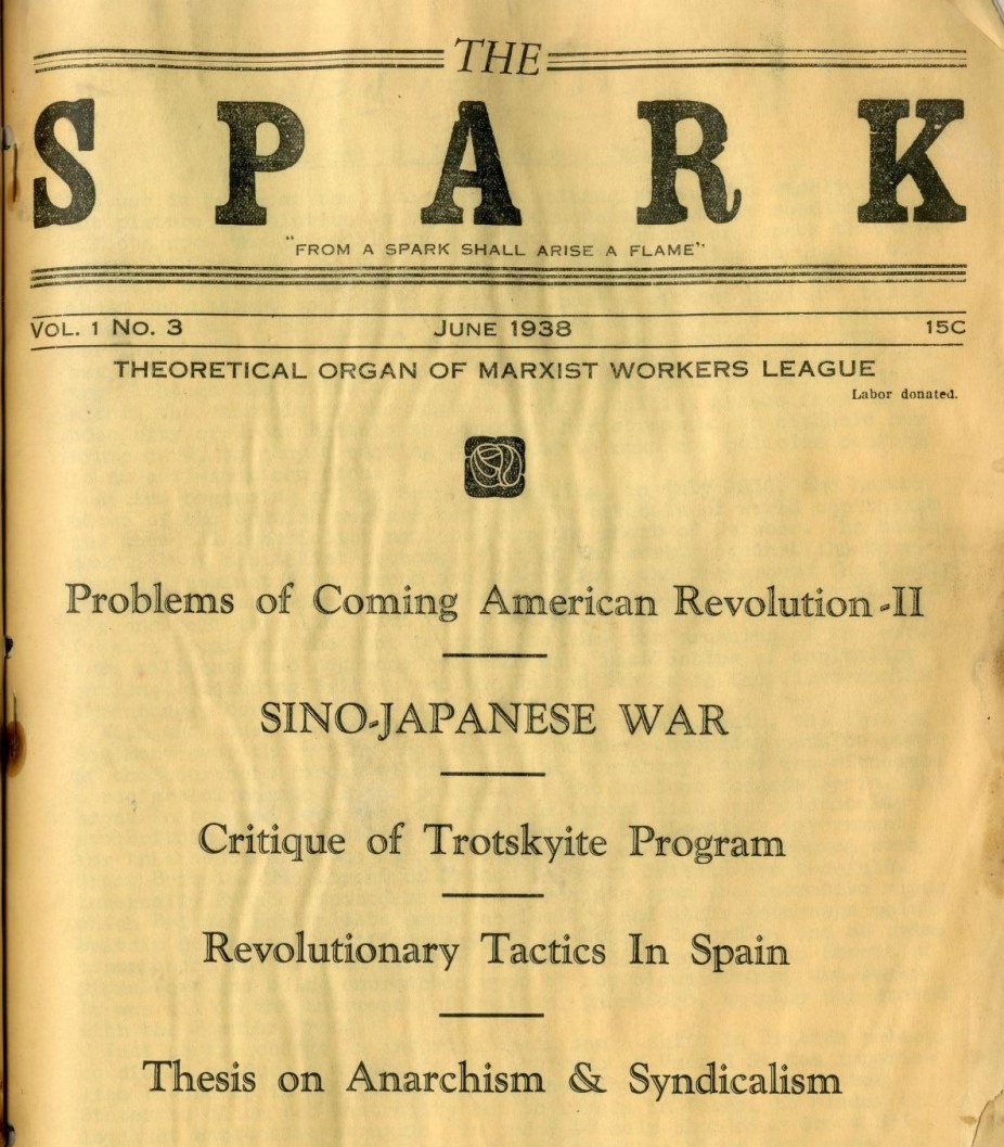 Spark was the journal of the Marxist Workers League, a split from the Revolutionary Workers League led by Karl Mienov. Mienov held that the Spanish Civil War was an inter-imperialist war and joined with other small forces to form the M.W.L. in early 1938. Published in New York Spark lasted from February, 1938 until May, 1939 when it was replaced by ‘Power.’ The M.W.L. and the small Revolutionary Marxist League united in 1940 to form the short-lived Workers Party.
