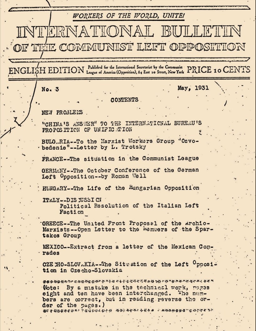 International Internal Bulletin, International Communist Left Opposition. No. 3. May, 1931.