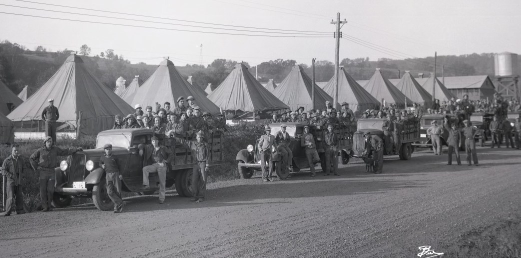 A young man who recently passed his 21st birthday at the camp is going home to his parent next Sunday, a finished product from the Ottawa National Forest, at Kenton City. A healthy boy, so pronounced by the doctor who examined him at Fort Wayne, in Detroit, he was sent to Camp Custer for two week, from which he was transferred to the forests. Today he is a victim of Roosevelt’s reforestation work. He is ruptured from lifting heavy logs at the camp and other hard work that has strained him. When he was ruptured, he was sent to Sault St-Marie, to the hospital theme, and then he was brought back to Kenton City. This lad was ruptured before and was operated on. and was well when he was sent to the camp by the Welfare Department. At the hospital he was given such humanitarian treatment that an animal would have received better care at the hands of a veterinarian. When the hospital tents were filled with sick youth, he was forced to spend three weeks sleeping on blankets on the hospital porch, after spending one week in the camp hospital tent. Later he was brought back to Kenton City, because the porches became overcrowded.