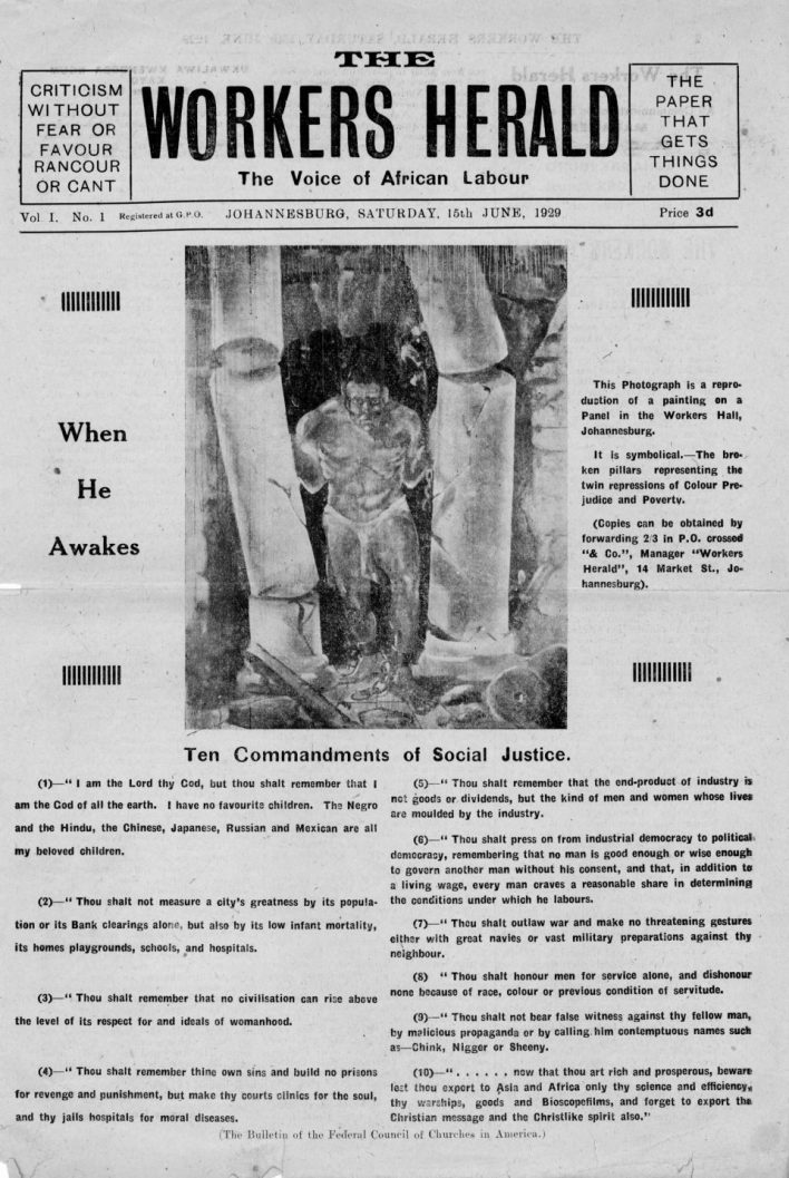 In the field of trade union work the Party must consider that its main task consists in the organisation of the native workers into trade unions as well as propaganda and work for the setting up of a South African trade union centre embracing black and white workers. The principle that the Party’s main orientation must be on the native population applies equally well to the sphere of trade union work. The Party should energetically combat the splitting policy of the Industrial and Commercial Union leaders under the slogan of unity of the whole trade union movement of South Africa. Further, the Party should work out a detailed programme of immediate demands for the native workers. The Communists must participate actively in the trade union organisation of the native workers, pursuing the policy of building up a strong lefi-wing within these organisations under Communist leadership.