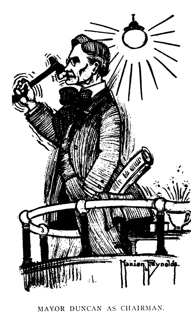 Jennie Potter and Max Boehm were on hand doing good work. It was queer how lonesome the politicians looked. It was noticeable that they never turned their backs to each other. This is one of the ills of politics. No man’s back is safe against the stabs of his associates.
