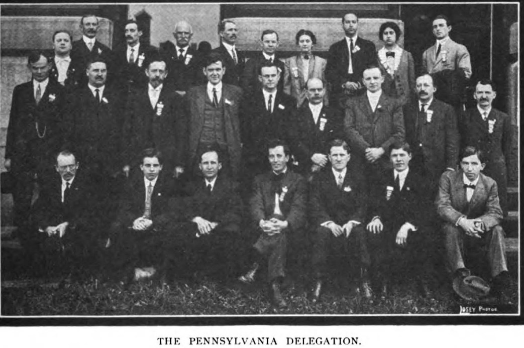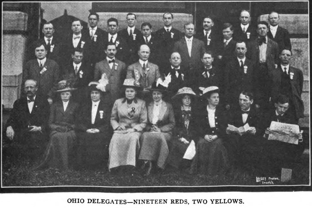 What was the matter with the Ohio delegation? Nothing! All Reds but two. Watch the line-up and you’ll know who the two are. Margaret Prevey can put it over any Yellow that ever assumed the platform to befuddle the delegates. Mrs. Storck was on the job just as she has been in holding Study Clubs the last five years. There are more copies of ‘Value, Price and Profit” sold in Ohio than any other state. Nothing doing in the co-operative line in the Buckeye state. Tom Clifford handed out Berger’s “Call to Arm” (the famous ballot and bullet editorial), and counselled the party to avoid antiquated methods. He proved by Berger’s own words that he was one of the chief advocates of violence. Pete Kinnear was on hand to assure the fighter that the Red delegation next time would be able to switch the party over into the hands of the working class.