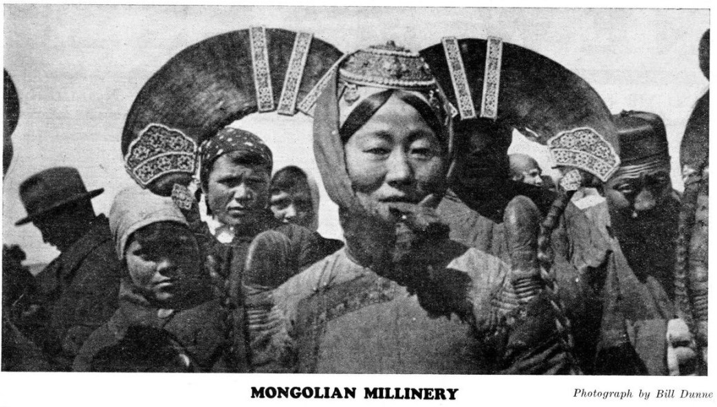 There were the sturdy women, dressed exactly like their men, except that occasionally one sees an ear-ring swinging below bobbed black hair. There was my Mongol translator who had been with the Roy Chapman Andrews scientific expedition which every Mongol says was prospecting for oil. There were the opportunist leaders with Europeanized manners who now are gone.