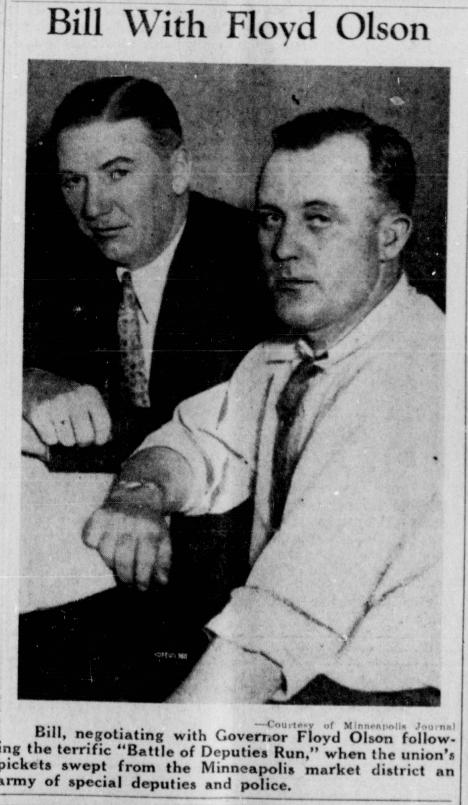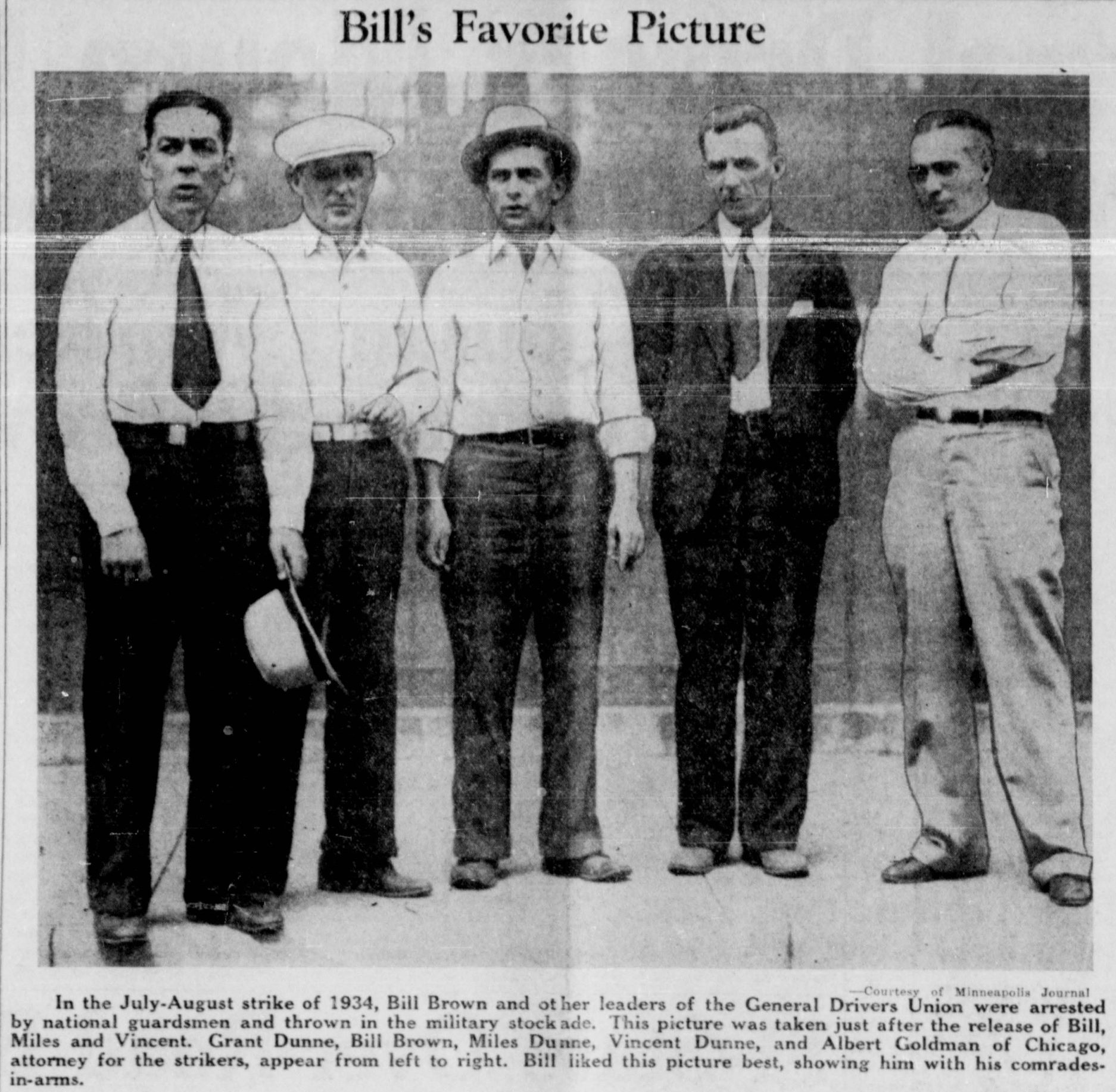 In the great strikes of 1934 – especially the July–August strike – Bill Brown came out of his shell and showed his real talent as a mass leader. Somewhat weak as an executive, and a poor office man (Bill wasn’t gifted on these lines), he loomed up powerfully at moments of crisis and showed the heart of a lion in times of action and danger. He fulfilled the duties of union president best on the picket line; and if a recalcitrant scab had to be clipped, he wouldn’t spare his own knuckles.