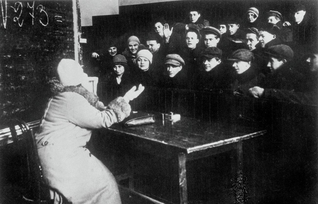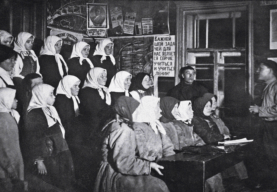 We have to deal with a country in which the percentage of illiterates is enormous, a country which it was the policy of the Tsarist regime to keep in darkness and ignorance, a country which was in the power of most fanatical prejudices. The old Out-of-School Department, now the Political-Educational Department of the Commissariat of Public Education, faced the problem of organizing public libraries, schools of all types for adults, clubs, people’s houses, excursions, etc. The task was to — this activity and give it a communist direction. In the field of library work the results were the following: