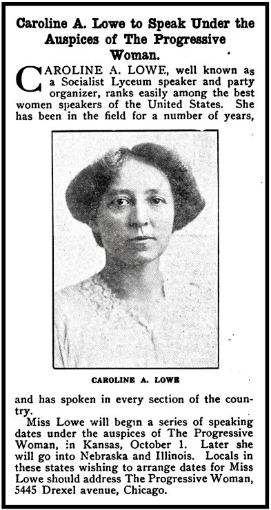 ‘Comrade Caroline A. Lowe’ from The Socialist Woman Vol. 2 No. 18. November, 1908.