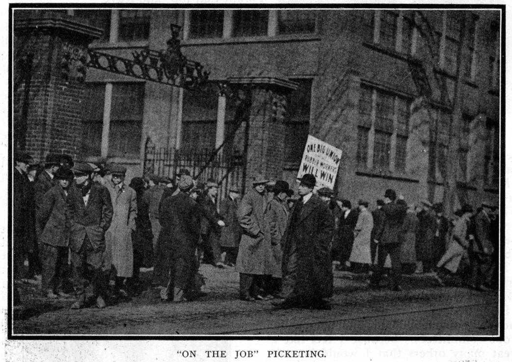 Monday morning saw a fine turnout of pickets and one half of the scabs failed to go to work. The police slugged but one man and he happened to be a scab!