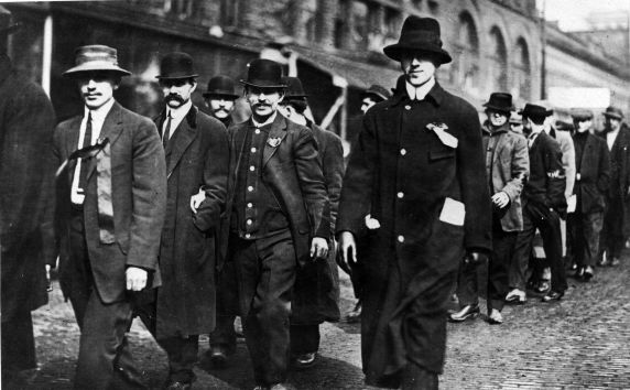 Organizer Durso was at once arrested and clubs were drawn against the crowd. Those In the rear, not knowing what was going on. Pushed forward the whole crowd. Sheriff Ferguson rushed up with a drawn blackjack shouting to his deputies, “Wade in and get busy if you want to hold your jobs.” The defenseless pickets were scattered in all directions by the blows from clubs and blackjacks in the hands of the thugs.