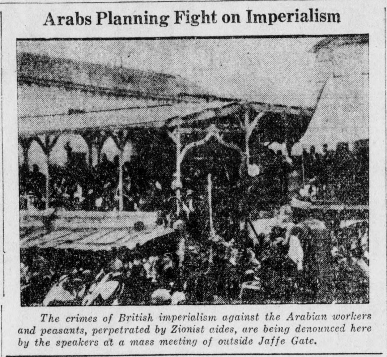 ‘Jewish Workers Support Arabs Against British’ from the Daily Worker. Vol. 6 No. 149. August 29, 1929.