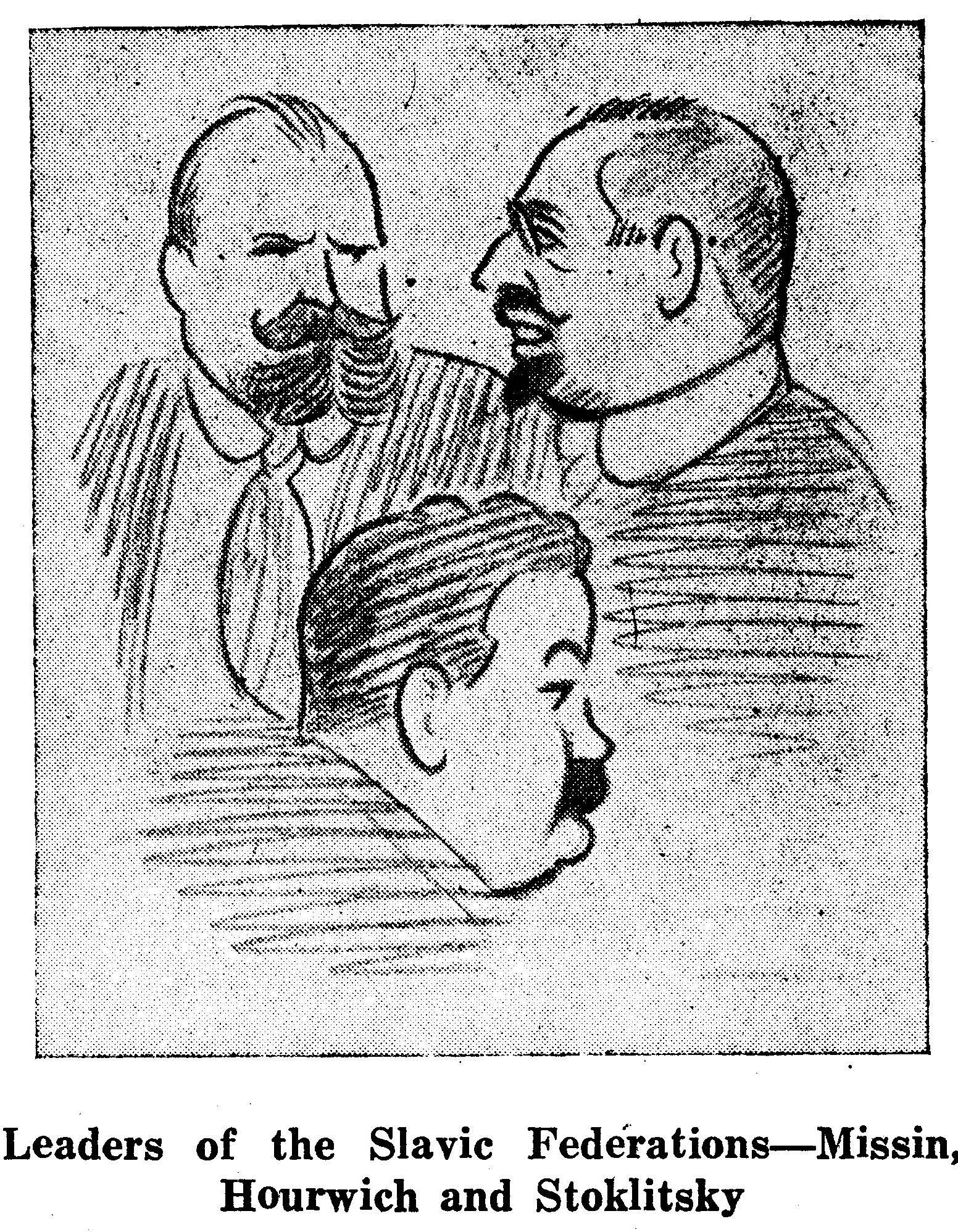 On account of ineligibility to the Executive Committee the names of some of the Translator-Secretaries do not appear in this list, though they were among the outstanding figures of the Convention, notably Joseph Stilson, the Lithuanian Secretary, George Selakovich, South Slavic Federation, and Joseph Kowalsky, Polish Translator-Secretary.