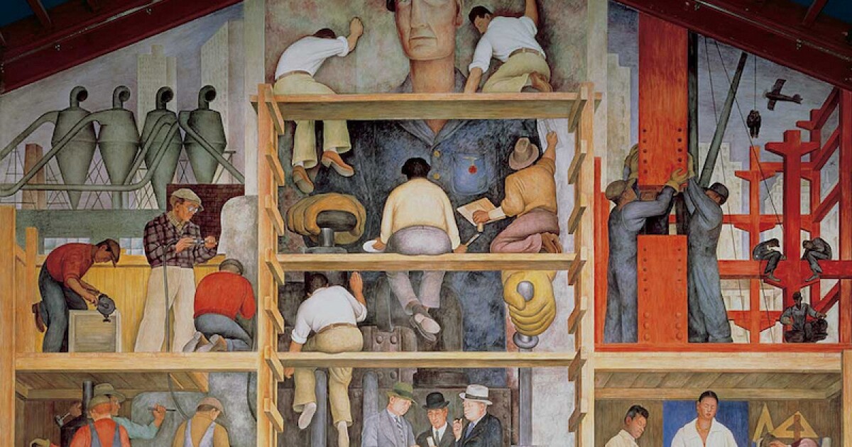 Rivera wrote this fervent essay for V.F. Cavlerton’s ‘Modern Quarterly,’ a journal of Marxist criticism, in conjunction with a major and extremely successful Rivera retrospective at New York’s Museum of Modern Art (PDF of original program here) and remains an important statement on the role of revolutionary art. For much of the first half of the 1930s Diego Rivera lived and worked in the United States. Among the notable pieces during his stay were the ‘Allegory of California’ at the Pacific Stock Exchange, ‘The Making of a Fresco Showing the Building of a City’ at the San Francisco Art Institute, the a massive, multi-paneled ‘Detroit Industry’ at the Institute of Arts, and the doomed ‘Man at the Crossroads’ in New York’s Rockefeller Center razed in 1934.