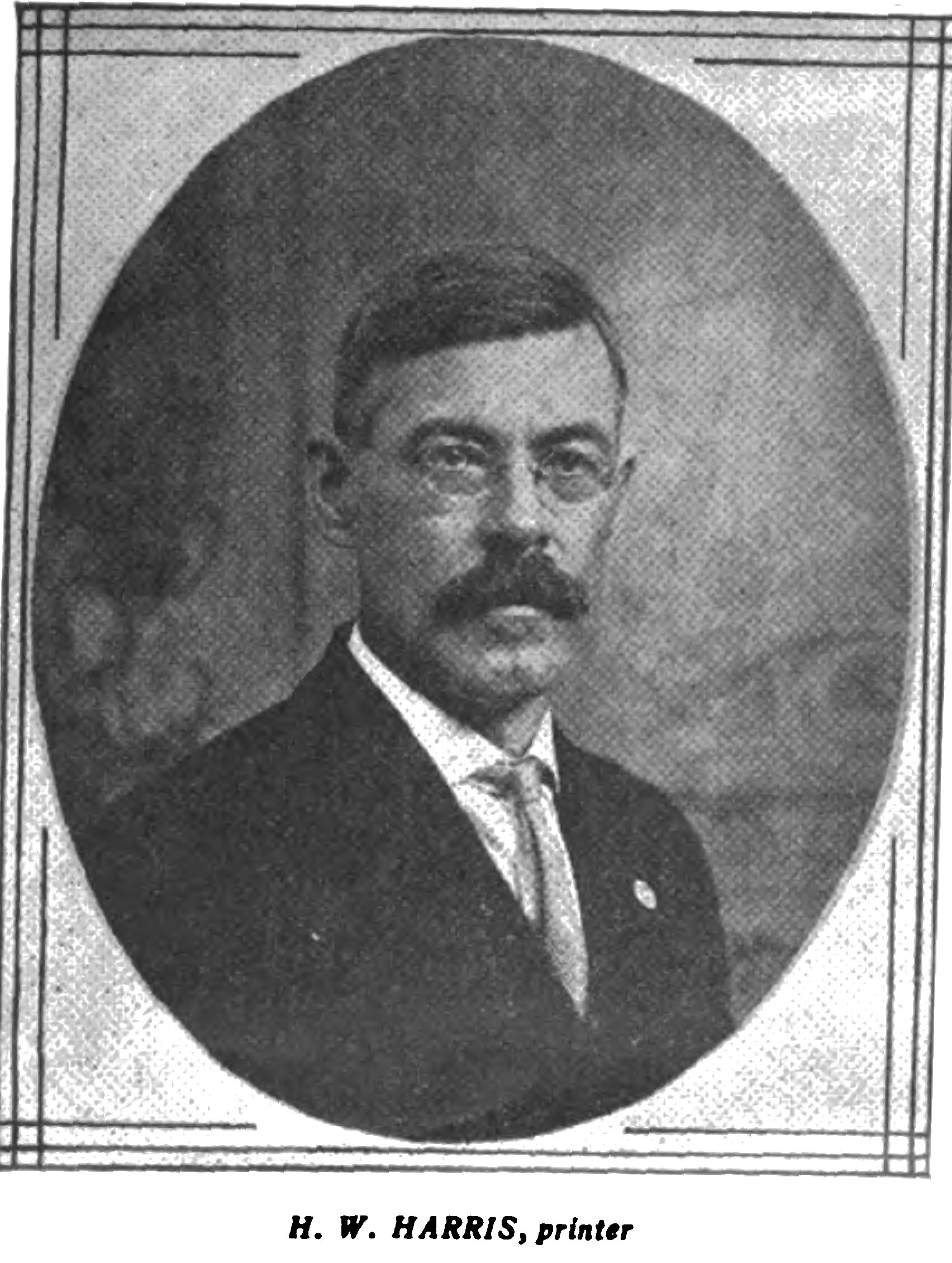 H.W. Harris, printer, working at his trade, and elected from a district known as the home of railroad workers.