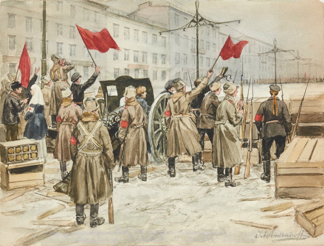 On February 24, 1917, strikes broke out in Petrograd; after short encounters with the police the troops went over to the people. The Red flag of revolution was raised over the palaces of the Tsar. But at this time the army, constituted, in the main, of peasants, which had so unanimously rebelled against its ‘Supreme Master’ had no revolutionary organization. The proletariat, which in reality was the driving power in this revolutionary blow, had no mass party; the only power of organization lay in the hands of the liberal bourgeoisie, to whom the power now passed. The general enthusiasm could, to be sure, smooth over all antagonisms for a time, but it could not eliminate the conditions making for class war; the formation of an armed force of its class was the chief task of the proletariat. The workers at Petrograd and other industrial centers already began to arm themselves on the day after the March Revolution, and to form the first troops of the workers’ guard. The protests of the government and of the Soviet still dominated by the Mensheviks can no longer hold up the course of events, and already the number of Red Guards has risen to ten thousand. When in the July days the Bolshevik party meets with defeat, this work suffers an interruption; but immediately after the Kornilov insurrection new workers’ battalions are formed, drills are held in the factories and works and in November the Red Guard, together with thе sailors, knock Krassnov and Kerensky on the head before the gates of Petrograd. Moscow and the provinces do not lag behind Petrograd; in the Urals there have been “Fighting Organizations of the People” since June, which have their own staff, subject to the party committee, and a firm basis is thus afforded for the passing of the power into the hands of the workers; Odessa and Moscow already have their Red Guard divisions in April. Parallel with this spontaneous movement there proceeds among the most advanced workers, beginning as early as March, 1917, the formation of a military organization of the Petrograd Committee of the Bolsheviki; communications have been established between all the regiments and detachments of the Petrograd garrison, as well as groups formed and revolutionary work among the masses begun. Early in May connections with the provinces and the front have been made and the Petrograd Military Commission becomes an All-Russian Center. The inability of the Kerensky Government to help the provinces, their treasonable agrarian policy and the desire of the masses for the termination of the war, create a situation in which the military organization has the greatest difficulty in preventing a premature uprising. In the July days after the unsuccessful Bolshevik revolt, the organization is destroyed. But the work of military preparation is continued and strengthened “illegally” and, simultaneously with the arming and grouping of the masses of the proletariat, as well as of the soldiers, a far-reaching, successful campaign is inaugurated at the front and also in the rear. November approaches. The Military Organization draws up the plan for an uprising, sends Commissars to the troops of the Petrograd garrison, with the aid of the latter takes possession of the stores of arms and munitions, and retains control of the insurrection.