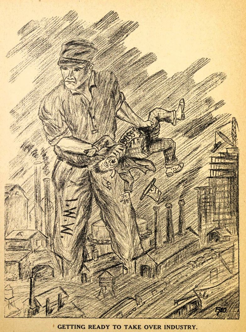 This emphasis on industrial strategy was shown by a Duluth chap, among others. He was not thinking in terms of herding a lot of workers together off the job, nor of having a society of rebels merely, such as a lot of off-the-job revolutionists think of, but of getting power through control of industry.