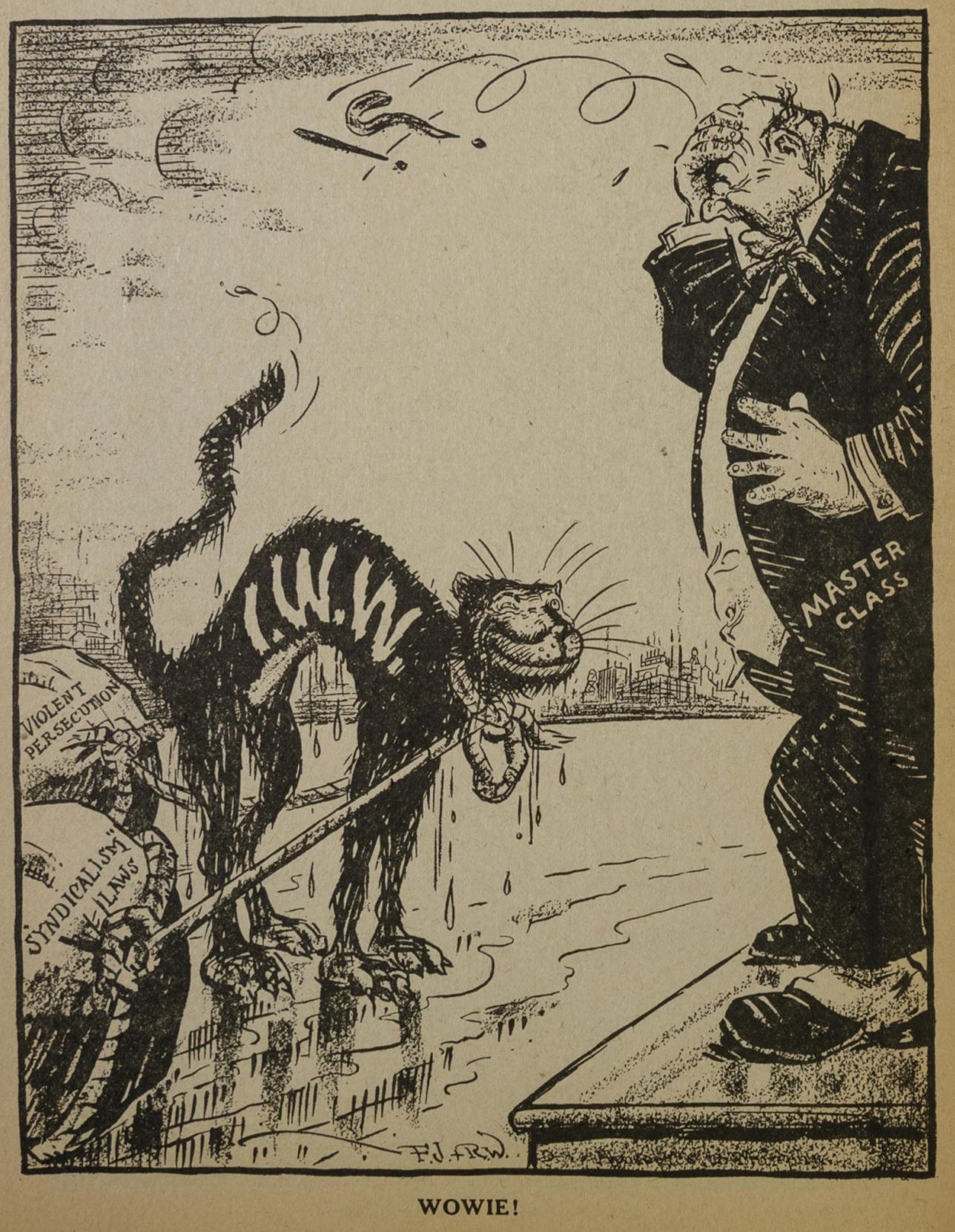 So that’s that, as the Wandering Wobbly said; but before this winds up let’s see what the Wobblies think of Ireland. You know Fellow Worker Jim Connolly who led the armed workingmen of Dublin in Easter Week, 1916, was an I.W.W. organizer in the early days of the movement over here. And the Irish Transport and General Workers’ Union which he and Jim Larkin helped to bring into existence is now the most vital force in Ireland and is on a thorough going O.B.U. basis. And it is being persecuted with all the rigor used against our boys on the west coast. So what could the Convention do but give its endorsement to the “struggle which the Irish workers are now waging against world imperialism,” to quote the special resolution brought in from the Butte branch and passed.