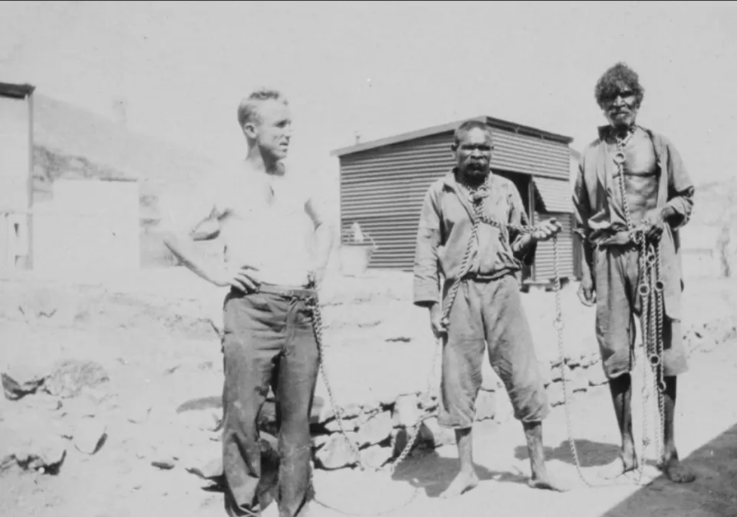 Such gentle British colonising devices as “Abo shooting hunts”, poisoning of the only water holes in the desert country, cyanide in the meat, and strychnine in the flour, police shooting parties, burning the bush over the heads of the tribes, segregating the sexes, kidnapping the children — particularly females — and putting them to work hundreds of miles away from their race and parents, killing off the game on the territory inhabited by Aborigines, thus starving them to death, arresting without any warrant, or for that matter any cause whatever, the most virile men in the tribes (after killing off the aged and infirm) and forcing the arrested to work with chains around their necks on Government roads and for station owners, issuing licenses to any capitalist desiring to employ unlimited numbers of native without pay for an indefinite period, setting up organizations of crawlers and kidnappers, known as “Aborigines Protection Boards” to enslave the remaining members of the tribes and “Mission Stations under dope-peddlers to muster the youth so that they can be sold into slavery — such truly British methods were used, and are still being used to enslave the Australian aborigines and totally to exterminate the race so that the crimes of the British and Australian imperialists may be covered up.