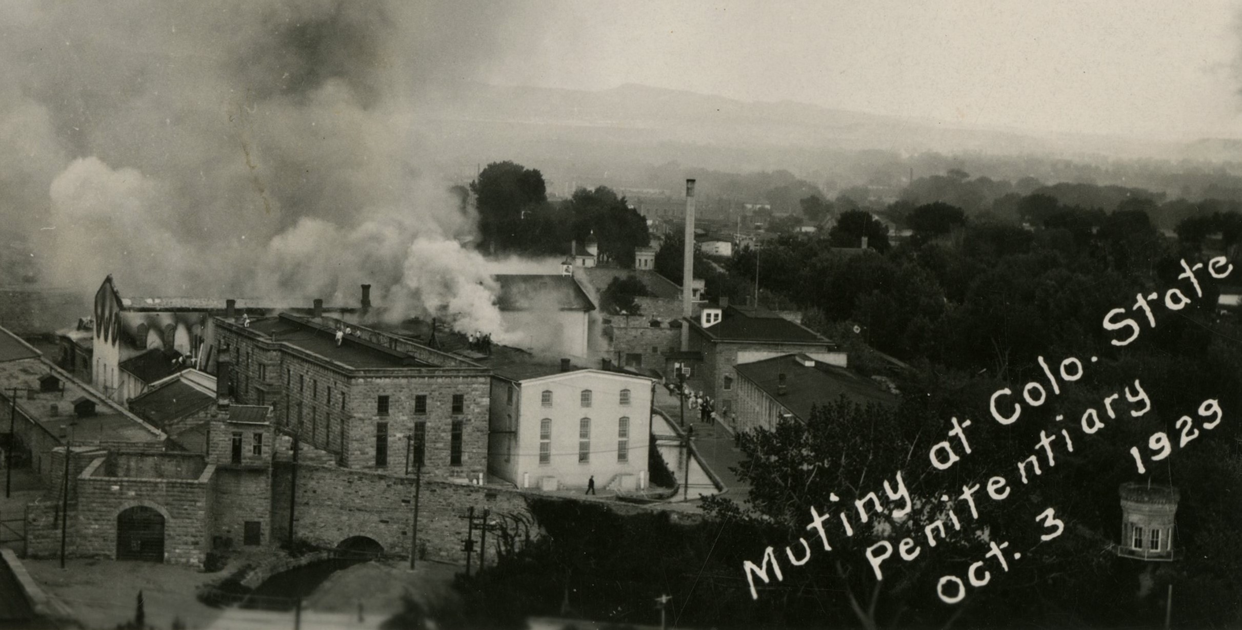 CANON CITY, Colo., Oct. 4. The mutiny of prisoners, goaded to desperation by the bestial regime existing in the overcrowded penitentiary here, ended today with seven guards and six prisoners dead, and the penitentiary buildings a mass of ruins as a result of fire and the all night battle between prisoners inside one of the cell blocks and the guards, militia and recruits from the town and countryside who swarmed to the scene when the outbreak occurred yesterday noon.