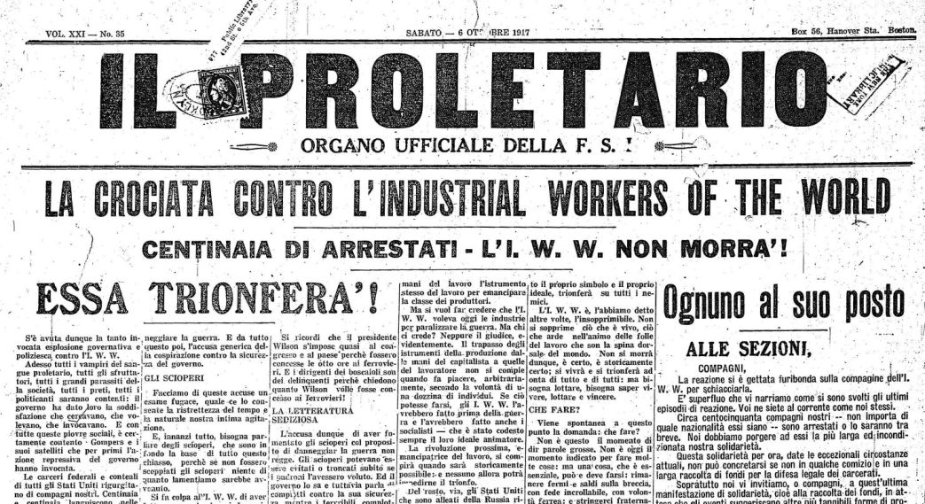 An Italian-Language Socialist Federation formed 1902, with G.M. Serrati the principal organizer and initially affiliated with the Socialist Labor Party. It withdrew in 1903, became an independent organization and began publishing lI Proletario with Carlo Tresca as editor in Philadelphia and as a daily paper. In 1906 it became a weekly publication and moved to Chicago . In 1906, the ISF claimed over 40 branches and 1200 members in good-standing and remained independent of both the SLP and SP. After suffering a split in which some members would joined the Socialist Party, others the SLP, the bulk joined the Industrial Workers of the World. Tresca quit as editor to publish his own paper and lI Proletario became the Italian-language paper of the I.W.W. In 1911, Arturo Giovannitti became editor until 1913. IWW activist, and ten years later, fascist trade union leader under Mussolini, Edmondo Rossoni, briefly became editor before World War One. Il Proletario remained a revolutionary syndicalist paper, Angelo Faggi its editor, and like so much of the US radical press, was shit down in 1918 and Faggi deported. Republished as Il Nuovo Proletario after the War from Chicago, it then moved to New York City with its old name and continued to run until the 1940s, one of the longest runs of a radical Italian-language press in US history.