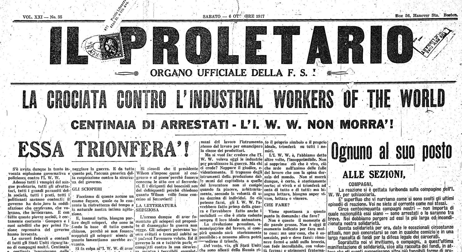An Italian-Language Socialist Federation formed 1902, with G.M. Serrati the principal organizer and initially affiliated with the Socialist Labor Party. It withdrew in 1903, became an independent organization and began publishing lI Proletario with Carlo Tresca as editor in Philadelphia and as a daily paper. In 1906 it became a weekly publication and moved to Chicago . In 1906, the ISF claimed over 40 branches and 1200 members in good-standing and remained independent of both the SLP and SP. After suffering a split in which some members would joined the Socialist Party, others the SLP, the bulk joined the Industrial Workers of the World. Tresca quit as editor to publish his own paper and lI Proletario became the Italian-language paper of the I.W.W. In 1911, Arturo Giovannitti became editor until 1913. IWW activist, and ten years later, fascist trade union leader under Mussolini, Edmondo Rossoni, briefly became editor before World War One. Il Proletario remained a revolutionary syndicalist paper, Angelo Faggi its editor, and like so much of the US radical press, was shit down in 1918 and Faggi deported. Republished as Il Nuovo Proletario after the War from Chicago, it then moved to New York City with its old name and continued to run until the 1940s, one of the longest runs of a radical Italian-language press in US history.