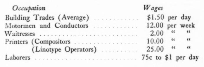 There are in most of these Islands a growing city proletariat. These workers, divorced from the land, are forced to live in crowded, unsanitary shacks. Receiving small pay (one to two dollars per day) they can only procure the barest necessities of life. To give an idea of the terrible exploitation of the workers, I will cite the prevailing rate of wages of a few occupations in Jamaica, which holds good for most of the Island: