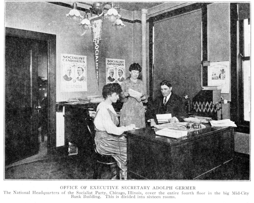 Here also is the national translator secretary of the German Socialists of America, of the Bohemian, Hungarian, Italian, Jewish, Polish, Scandinavian, Slovak and South Slavic. Each secretary represents a national organization. Each has his desk in this National Office of the party. Each will be seen busy with the work of Socialist propaganda and agitation.