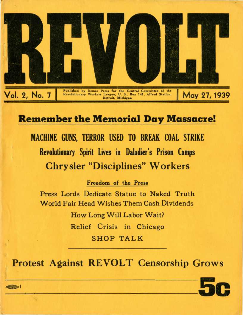 Revolt (Revolutionary Workers League/Stamm). Vol. 2 No. 7, May 27, 1939.