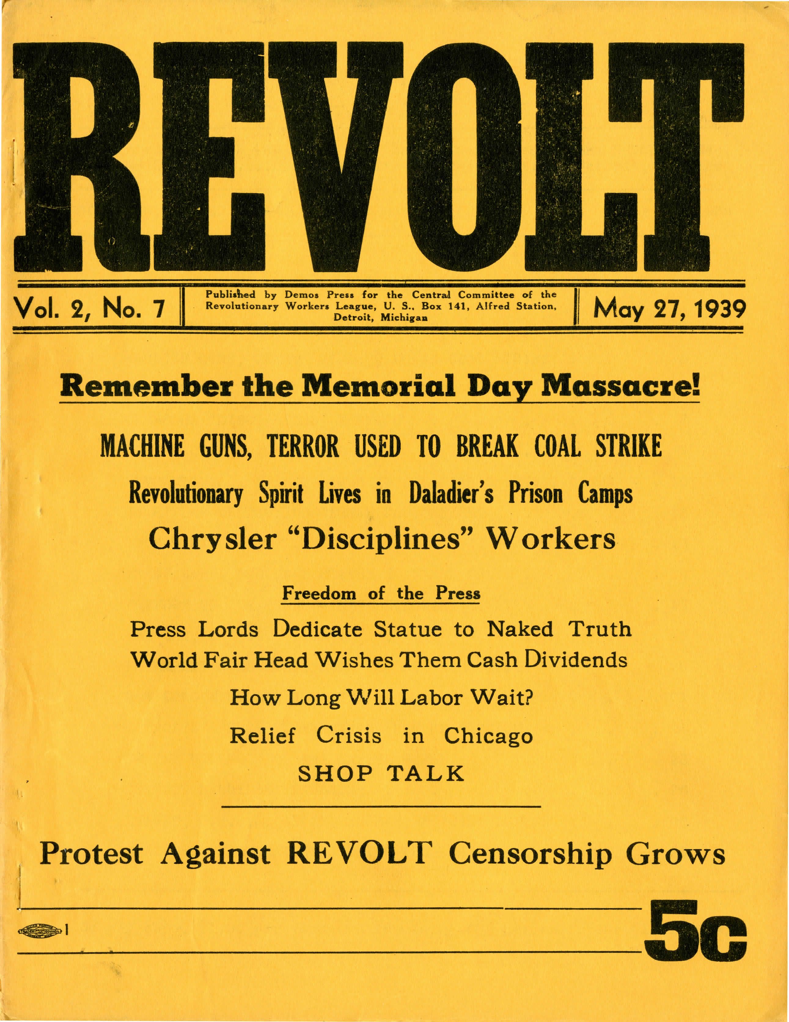 Revolt (Revolutionary Workers League/Stamm). Vol. 2 No. 7, May 27, 1939.