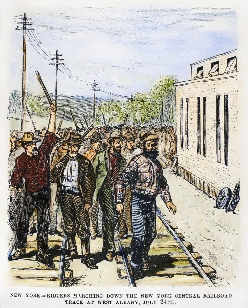 Early in ’77 a number of the great railroad corporations, several of which had only recently cut wages, announced further reductions to go into effect in the summer. An attempt was made by a rank and file committee organized by a young brakeman from men discontented with the lack of fight shown by union representatives chosen to treat with company officials, to form a secret union of all classes of rail workers on the three grand trunk lines to carry out a simultaneous strike against reductions.