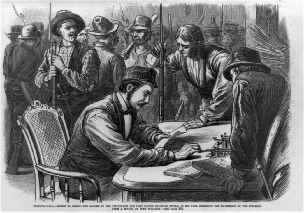 The Pennsylvania Railroad had already cut wages 10 per cent in June, and now they intended to introduce “double-headers” on the line; that is, freight trains made up of double the number of cars manned by crews of the same size as formerly. This involved the dismissal of hundreds of workers, and much more labor for the men who were retained.