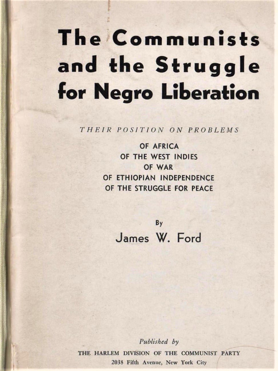 The Communists and the Struggle for Negro Liberation by James W Ford. Published by the Harlem Division of the Communist Party, New York. 1936.