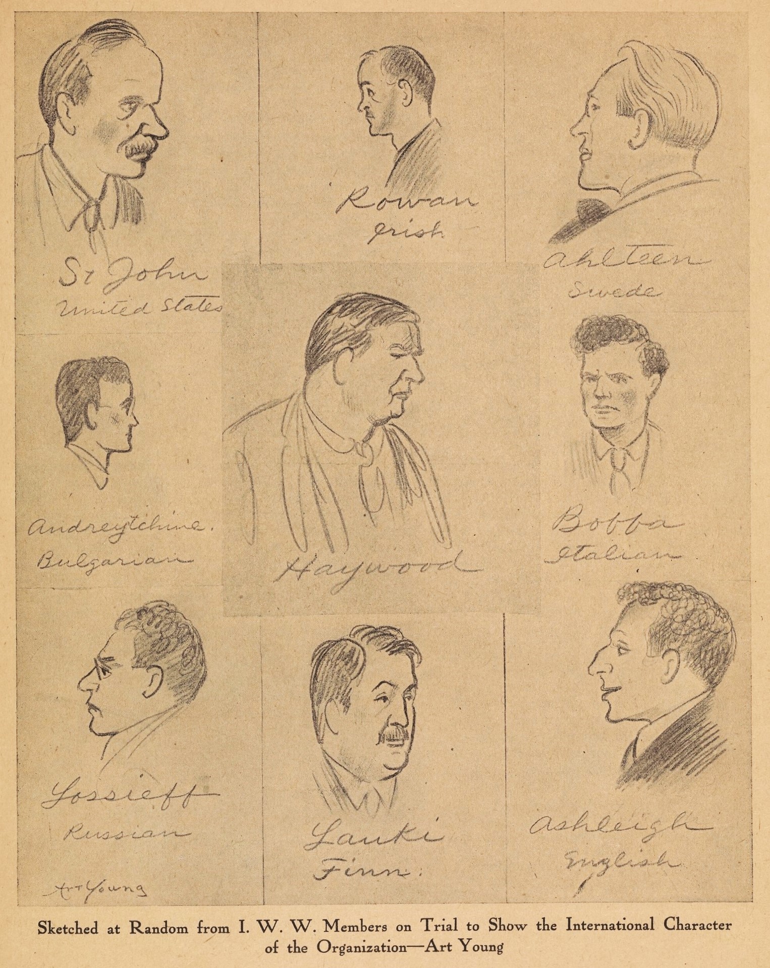 In order that there should be no opportunity for sentimentality, the prosecution dismissed all indictments against women defendants; in order that the I.W.W. should not be able to testify about the worst outrages perpetrated against the workers, not one of the Bisbee deportees was put on trial, and not one of the Butte strikers who might testify to the “Speculator” mine fire…But because of the latitude allowed by Judge Landis, and the skill of Vandeveer and Cleary, the defense has been one long bloody pageant of industrial wrong; Coeur d’Alene, San Diego, Everett, Yakima Valley, Paterson, Mesaba Range, Bisbee, Tulsa…