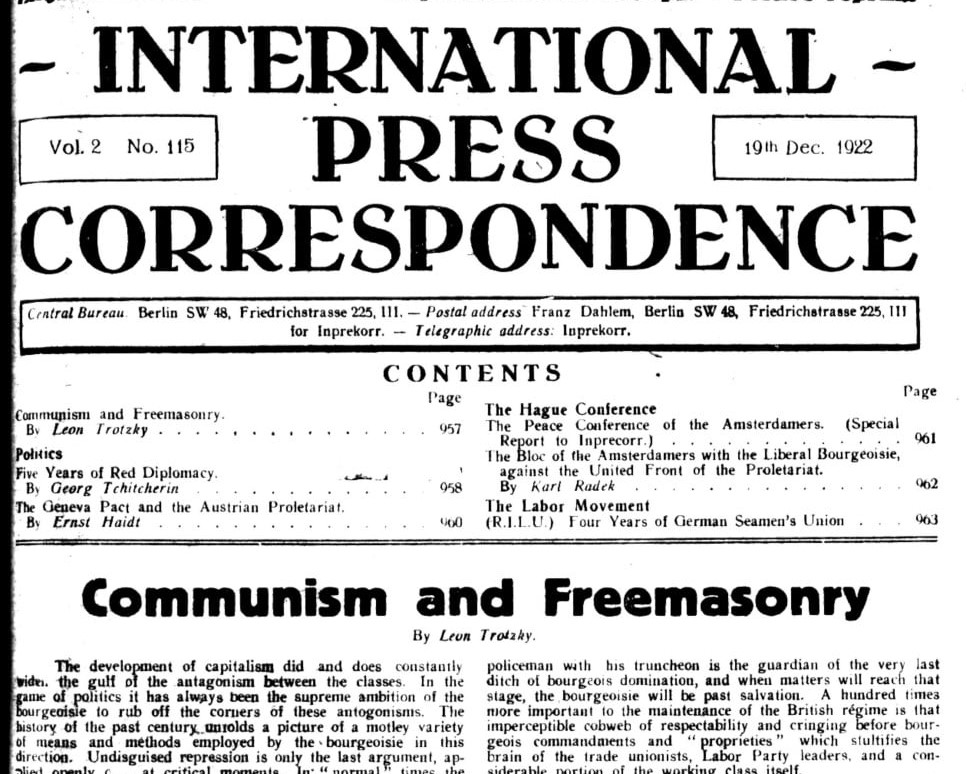 A particular interest in this issue are ‘Communism and Freemasonry’ by Leon Trotsky and ‘Five Years of Red Diplomacy’ by Georg Tchitcherin. Online text of both articles linked below.