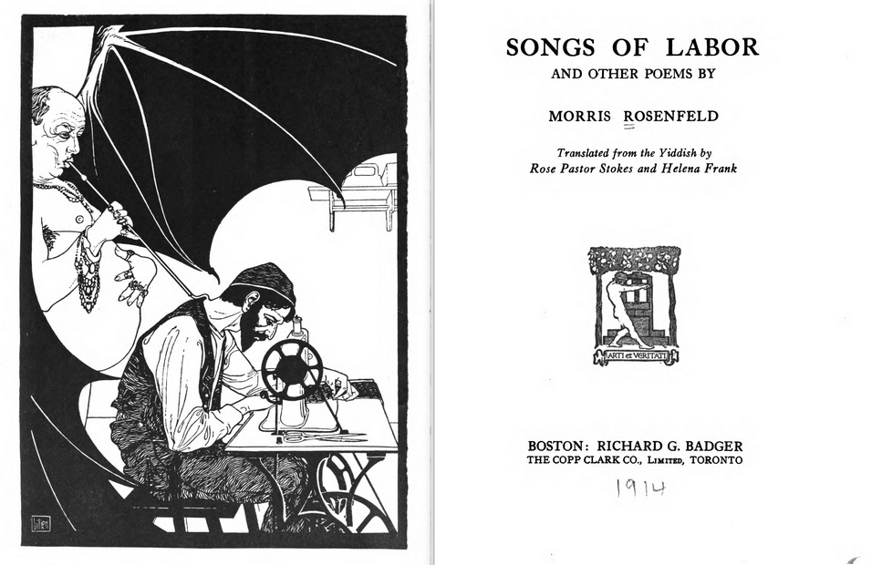 Songs of Labor and Other Poems by Morris Rosenfeld. Translated by Rose Pastor Stokes and Helen Frank. Richard G. Badger Publishers, Boston. 1914.