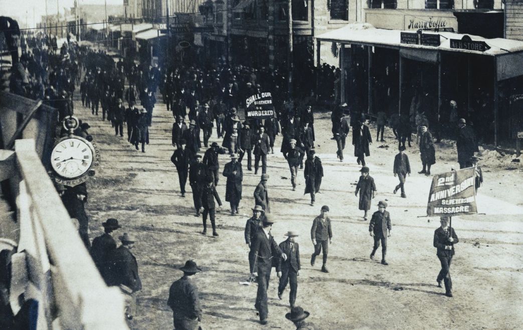 And further realizing that their struggle is our struggle, that their loved ones who were murdered on “Red Sunday,” were our loved ones, that their brothers, sisters and children were members of our class, and comrades in our cause, therefore, we pledge ourselves to support the fight as long as it shall last, in every way at our disposal, and we will not stay our hand until our fellow wage workers in Russia and every part of the world shall be liberated from the bondage of wage slavery and stand forth as free men and women in the Co-operative Commonwealth, which is our goal.