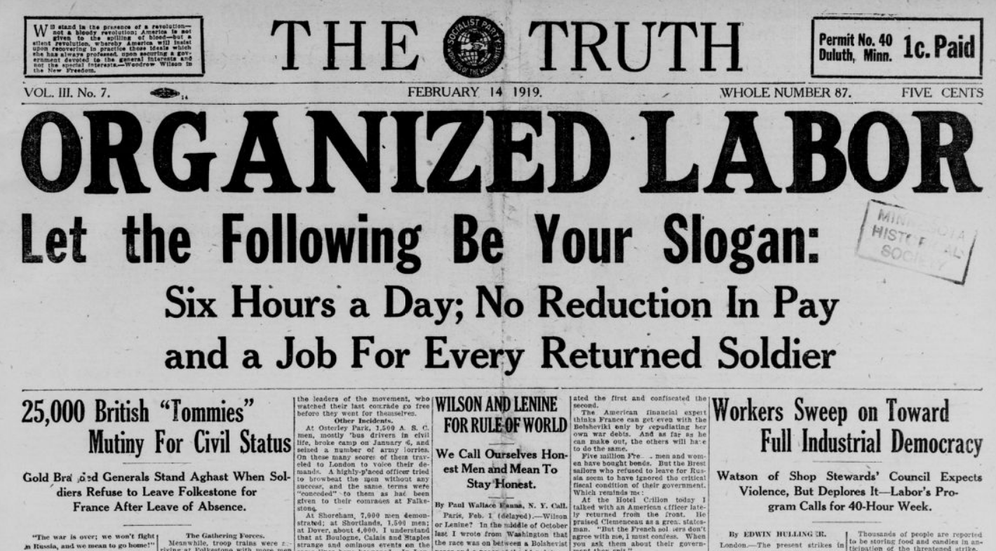 The Truth (Duluth, Minnesota). Vol. 3 No. 7. February 14, 1919.