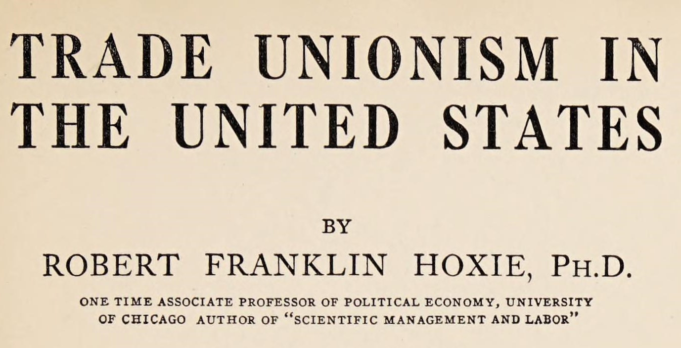 If I were deported as a Red and could take with me only one book on American trade unions, I would want that book to be “Trade Unionism in the United States,” by Robert F. Hoxie. No other single volume gives so clear a picture of the motives, structure, control, and history of organized labor.